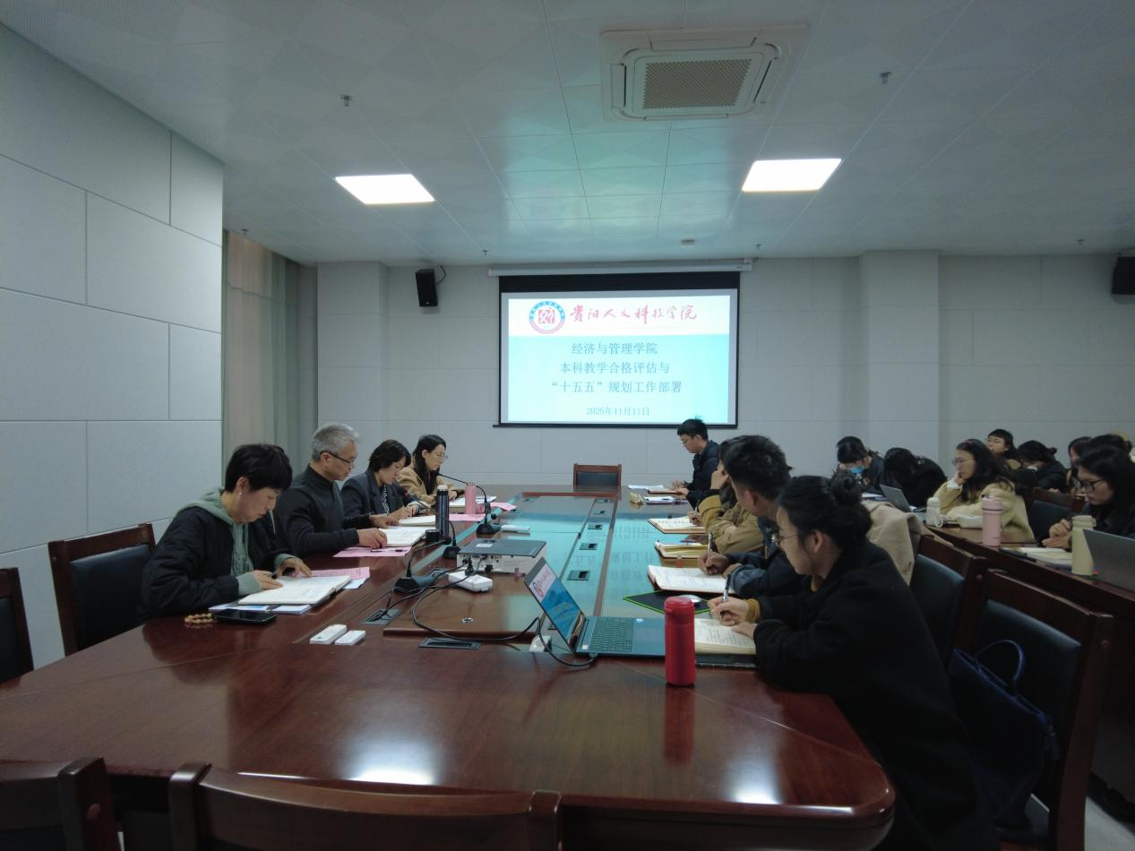 11月11日,经济与管理学院在pp电子官方网站大学城校区师德楼召开全院教职工会议,专题部署本科教学合格评估与“十五五”规划相关工作,学院党委书记田丹主持会议。