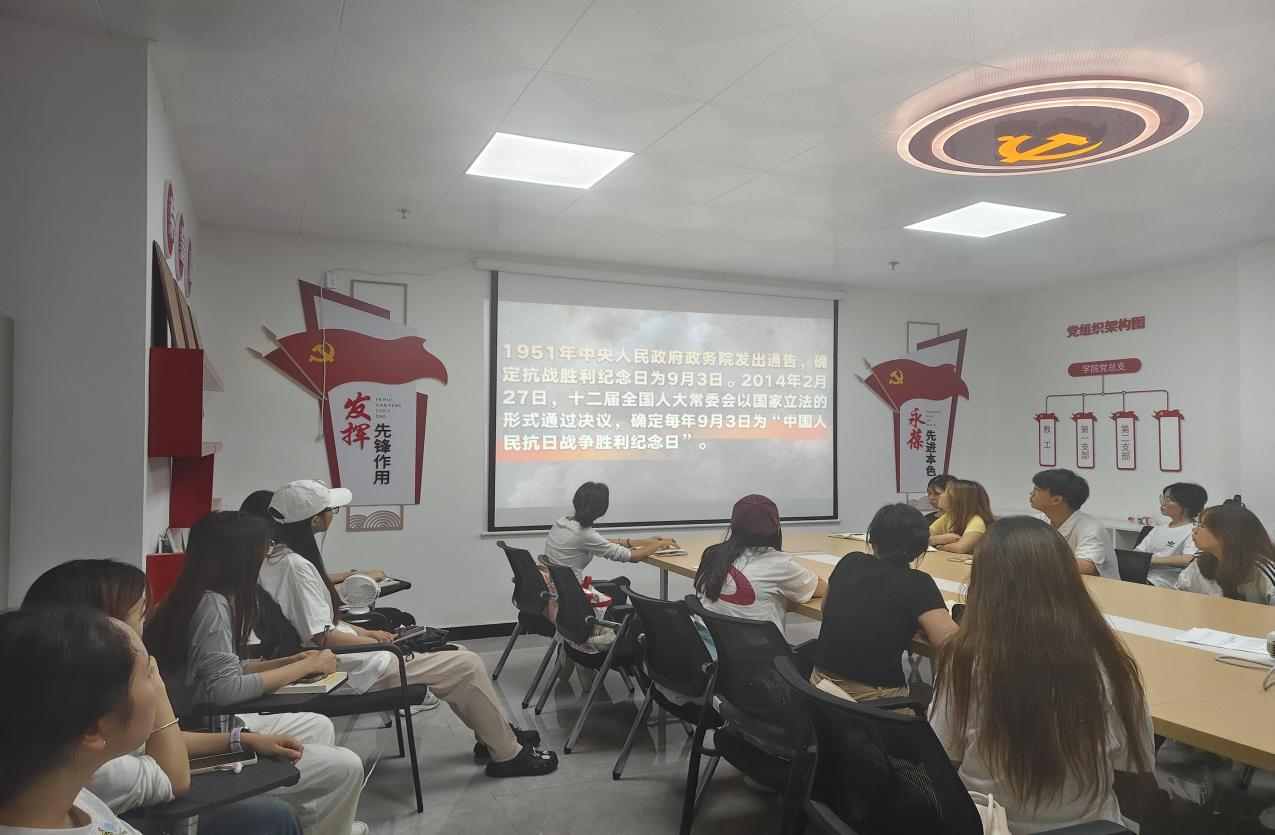 2025年9月18日,为深入学习习近平总书记在纪念中国人民抗日战争暨世界反法西斯战争胜利80周年大会上的重要讲话精神,落实省教育厅及学校关于收看思政大课的工作要求,体育与艺术学院党委组织下属两个学生党支部——学生第一党支部和学生第二党支部,开展了以“纪念中国人民抗日战争暨世界反法西斯战争胜利80周年”为主题的党日活动。