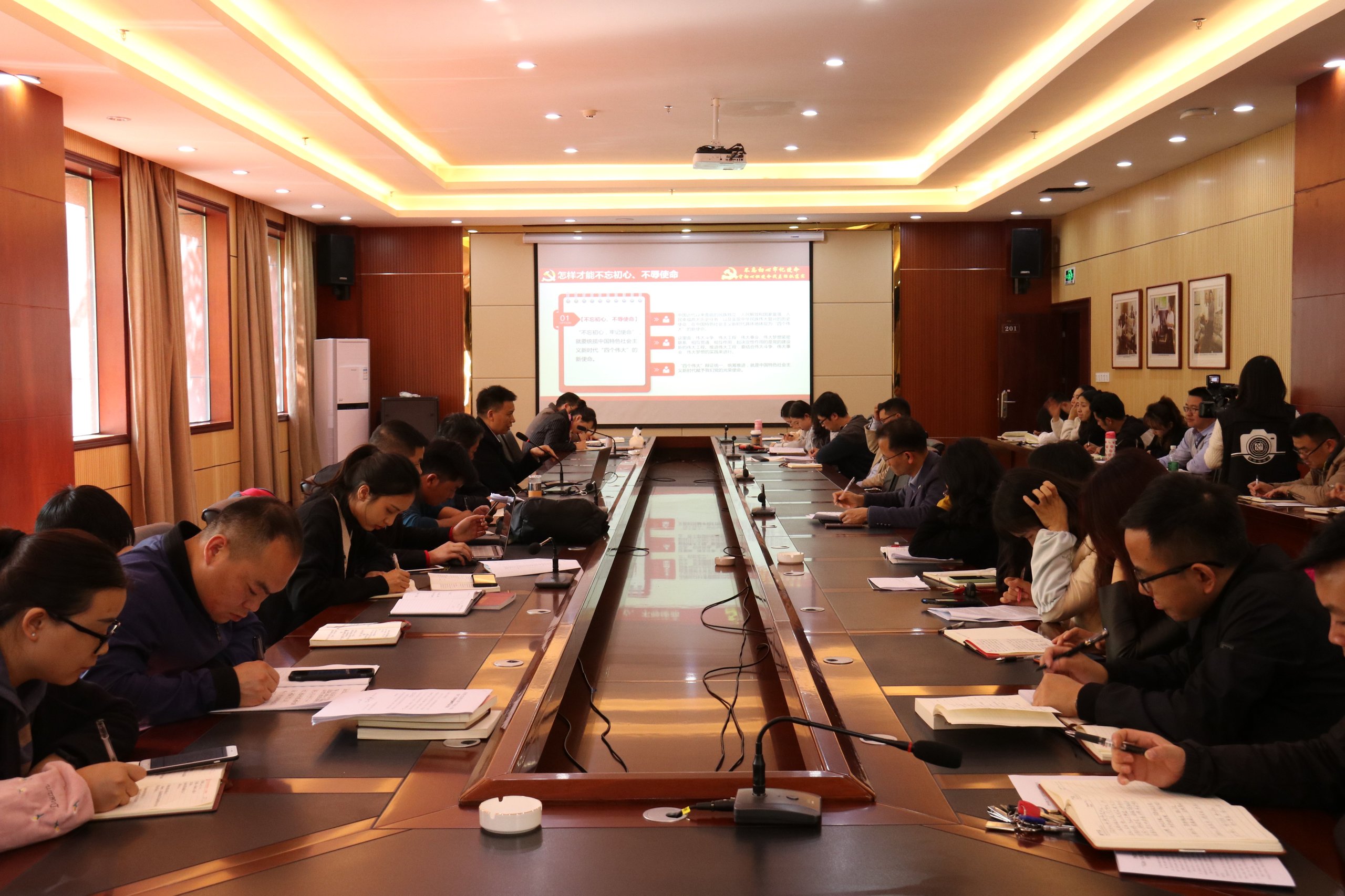 人文大学生新闻中心(实习记者 杨蓉蓉 实习摄影 邓析 张玲玲)为深入推进“不忘初心、牢记使命”主题教育,提高党员政治觉悟,保持党员先进性。11月14日14:30,pp电子在大学城校区行政楼201会议室开展“不忘初心、牢记使命”主题教育专题党课,党课由学校党委书记陆官虎主讲,中层以上党员干部、各党总支书记、党支部支部书记聆听了此次党课。