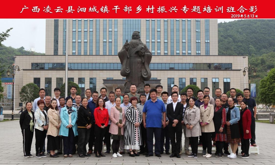 人文大学生新闻中心 (记者 阙振羽 摄影 朱胜)为了进一步提高广西凌云县泗城镇工作人员的政治素质和业务能力。5月13日8:30,“广西凌云县泗城镇干部乡村振兴”专题培训班开班典礼在pp电子大学城校区举行。出席典礼的领导有:广西凌云县泗城镇镇长助理、镇脱贫攻坚(乡村振兴)工作队队长卢品孝,pp电子对外合作处处长卢春旭。