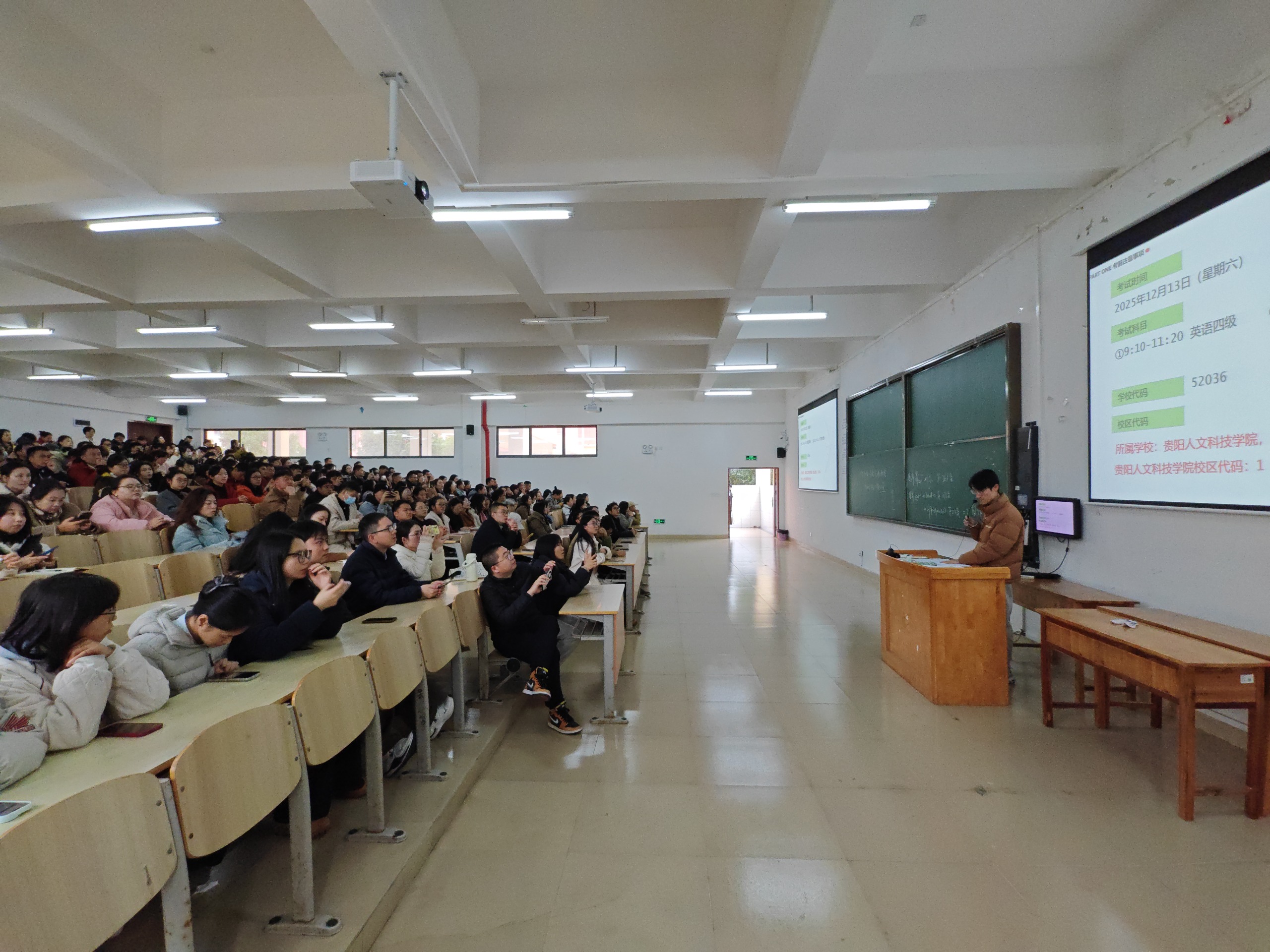为全面落实教育部及省考试院关于全国大学英语四、六级考试的工作部署,进一步提升监考队伍的责任意识与履职能力,保障12月13日考试安全、平稳、有序进行,pp电子教务处于12月11日分别在花溪校区与大学城校区组织开展了监考人员集中线下培训。全体承担本次考试监考任务的人员参加了此次培训。