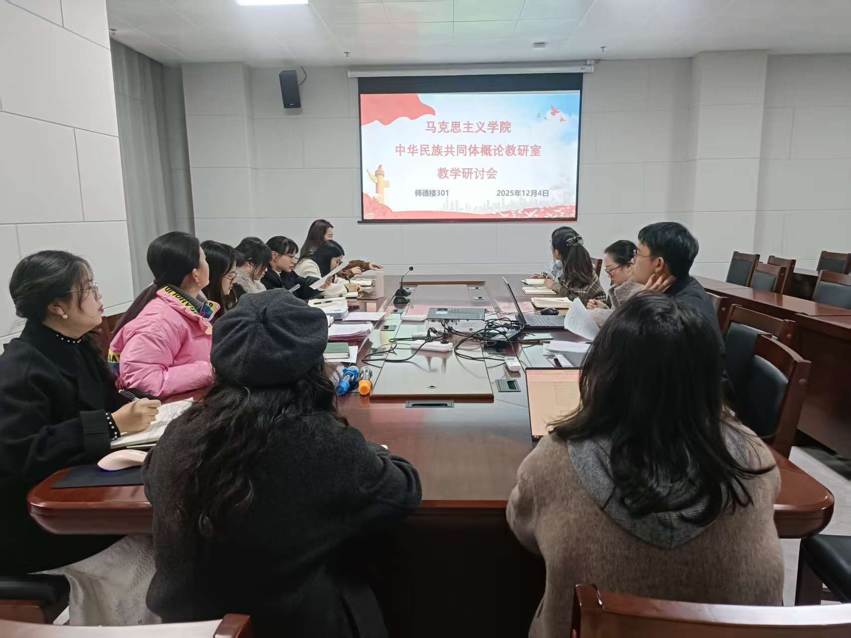 为深化思政课教学改革,切实提升育人实效,近日,我院中华民族共同体概论教研室组织召开教学研讨会。教研室刘佳老师围绕“OBE理念在思政课教学中的应用”作了主题分享,教研室全体教师参与研讨交流。