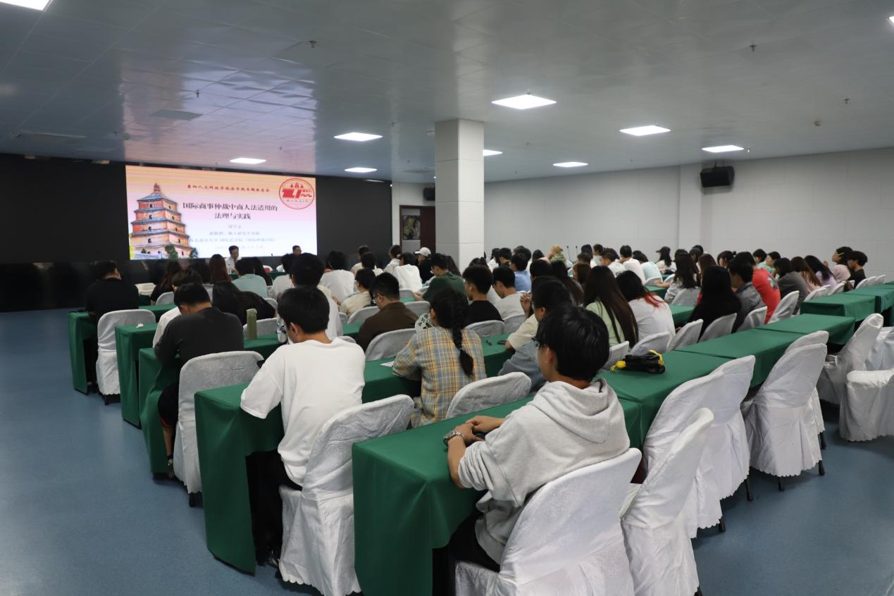 讲座伊始,法学院院长杨武松首先对刘学文博士的到来表示热烈欢迎,并强调了此次讲座对于提升学院学术氛围、拓宽师生国际视野的重要意义。在讲座中,刘学文博士结合自己丰富的学习经验和人生阅历,围绕国际商事仲裁中商人法的适用问题展开了深入浅出的讲解,并详细阐述了条约与条约冲突的问题,为师生们提供了宝贵的法律实践视角。对知识的讲解既有高屋建瓴的理论高度,又有脚踏实地的实践深度,为师生们打开了一扇通往国际商事仲裁前沿领域的大门,也为他们未来的职业发展提供了宝贵的启发和指导。