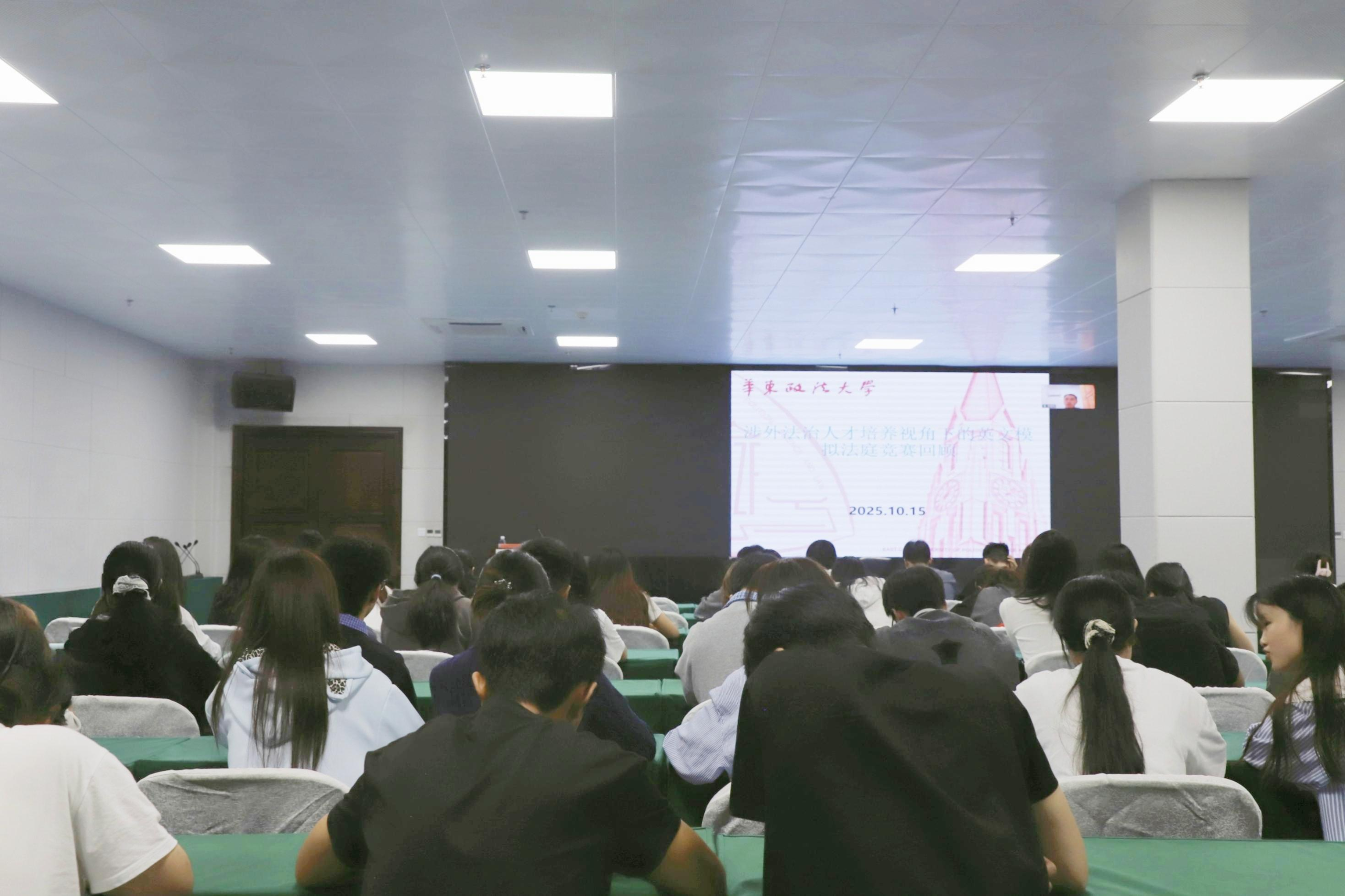 讲座伊始,李晓郛副教授首先系统梳理了国家关于统筹推进国内法治与涉外法治的重要论述,强调了加强涉外法治专业人才培养的紧迫性。他结合政策演进与培养实践,详细介绍了当前涉外法治人才培养的多元模式,包括实验班、中外合作办学、双校联合培养以及新兴的涉外法治学院模式,并分析了各类模式的特色与适用性。李晓郛教授着重指出,英文模拟法庭竞赛是落实“精英明法”培养理念、打破法律与外语学习壁垒的有效实践载体。他结合WTO模拟法庭竞赛等国际赛事的赛制与案例,深入阐述了备赛参赛过程中如何全面锤炼学生的法律文书写作、口头辩论、法律研究与英语应用能力,并有效培养其跨文化沟通、团队协作与临场抗压的综合素养。他强调,这种沉浸式、竞技性的实践体验,对于弥补传统课堂在涉外法律实务训练方面的不足具有不可替代的作用。