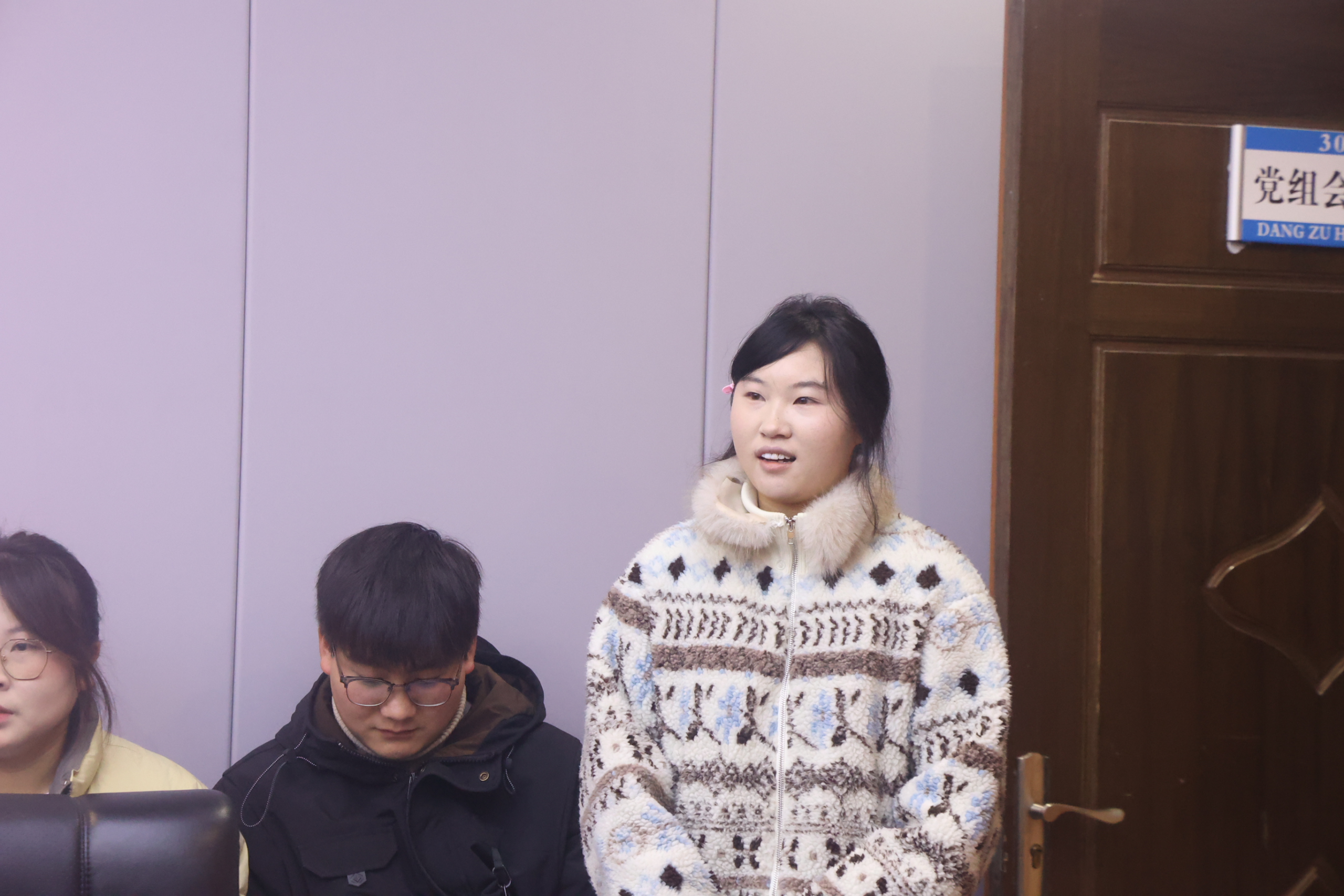 会议伊始,邱海燕主任系统介绍了实习生在法院的整体实习情况,对各岗位实习生的表现给予积极评价。随后,立案庭、民事审判庭、刑事审判庭、综合审判庭、执行局等部门的负责同志分别结合本部门实际,详细介绍了实习生参与案件辅助、文书起草、庭前准备等工作的具体情况,并对同学们的专业素养和务实态度表示认可。