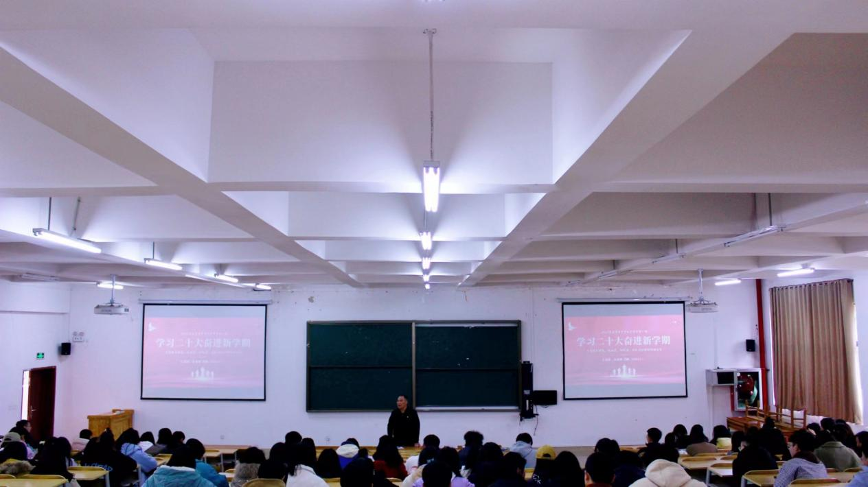 2023年3月2日,pp电子官方网站法学院2023年春季开学第一堂思政课“学习二十大,奋进新学期”课程活动在大学城修身楼108开讲。本次开学第一课由法学院党总支书记张福高同志讲授,听讲本次“开学第一课”的有2020级法学多个班级的的全体学生。
