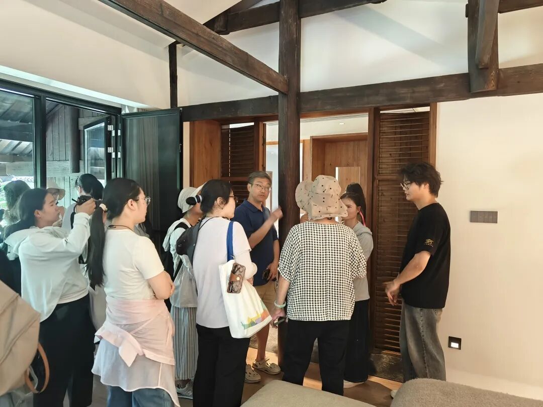 本次调研,由匠庐耕读第实习管家杜伟全程陪同讲解。杜伟是我院2025届旅游管理专业毕业生,也是首届民宿经营管理微专业班学生,在2025年的全省民宿管家技能大赛一举获得三等奖后,杜伟也成功通过面试入职耕读第民宿,开启了自己的民宿管家职业生涯。学院领导和专业老师们也向他表示真诚祝贺,仔细了解了入职以来工作和生活情况,鼓励他在民宿管家的职位上不断精进技能,持续取得更好的职业成就。