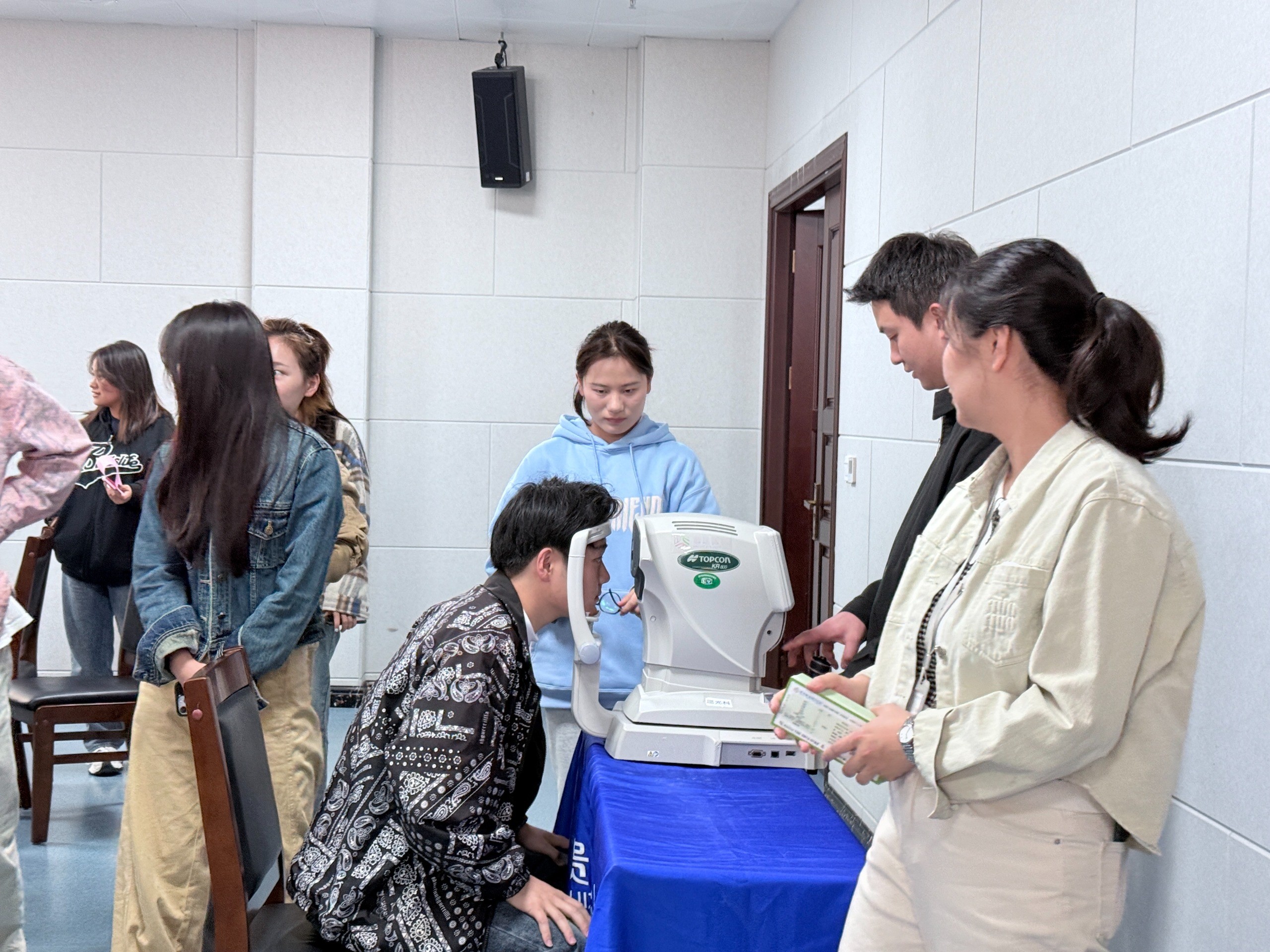 贵州普瑞眼科医院胡学伦医生聚焦征兵体检核心环节,向同学们分享《2025年征兵体检攻略》。他结合临床案例,深度解析视力标准(裸眼视力≥4.5)、疤痕检测、心电图异常等高频淘汰项,强调提前半年干预的重要性。现场设立“视力预检服务站”,胡学伦利用专业仪器为到场学生进行免费筛查,针对临界视力者提出个性化矫正方案。