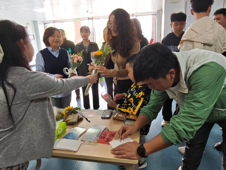 毕业生送花给各位老师
