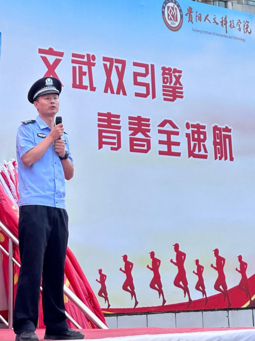 为切实提升新生的安全防范意识与能力,守护好同学们的“钱袋子”和身心健康;9月10日,学校学生工作部(处)联合保卫处在花溪校区足球场举办2025级新生防诈反诈法制教育宣讲会。宣讲会特邀松山派出所副所长赵普林作主讲,2025级新生及班主任参加宣讲会。