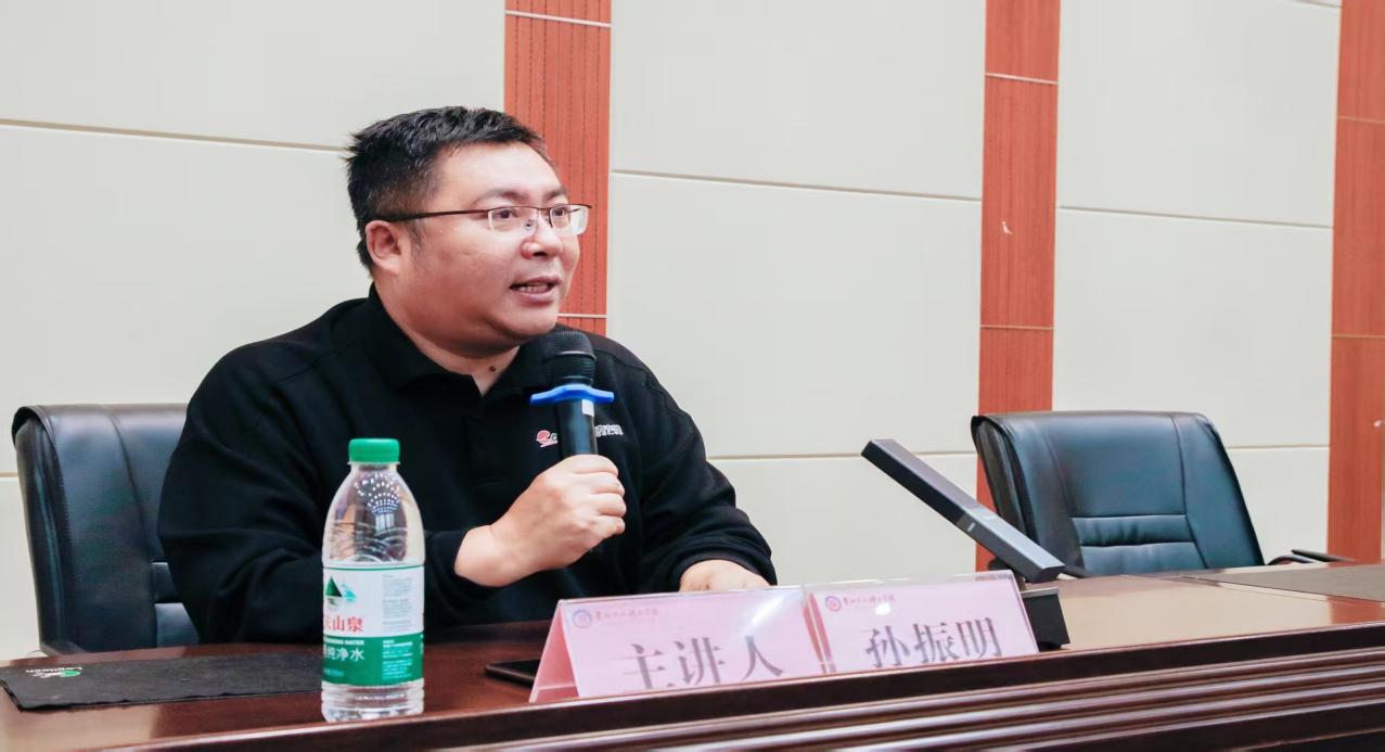 本次会议特邀教育部全国大学生职业规划大赛评审辅导专家、中国国际“互联网+”大学生创新创业大赛特聘专家、中国教育在线职业规划高级指导师孙振明对赛制进行解读。孙振明围绕“解码赛事 致胜未来”这一主题,对第二届全国大学生职业规划大赛进行了回顾,并就第三届全国大学生职业规划大赛备赛策略、第三届全国大学生职业规划大赛种子选手的选择框架与研判要点、第三届全国大学生职业规划大赛种子选手的提升与塑造等方面,分享了职业规划大赛赛事新体系的探索与实践成果。他指出,职业规划不仅是个人发展的重要组成部分,也是社会和经济发展的客观需求。他鼓励学生积极思考自身的职业兴趣与目标,充分利用学校提供的资源和平台,为自己的职业生涯进行精心规划。