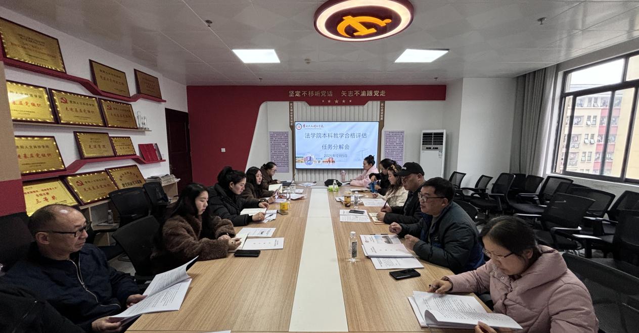 此次任务分解会的召开,进一步细化了迎评促建工作举措,明确了工作目标与责任边界,为学院后续高效有序推进评建工作奠定了坚实基础。法学院始终高度重视本科教学合格评估工作,法学院将以此次会议为契机,统一思想认识,凝聚工作合力,切实增强责任感与紧迫感,全力以赴做好各项评建准备,确保顺利通过本科教学合格评估,为推动学校教育教学质量与整体办学水平提升贡献法学院力量。