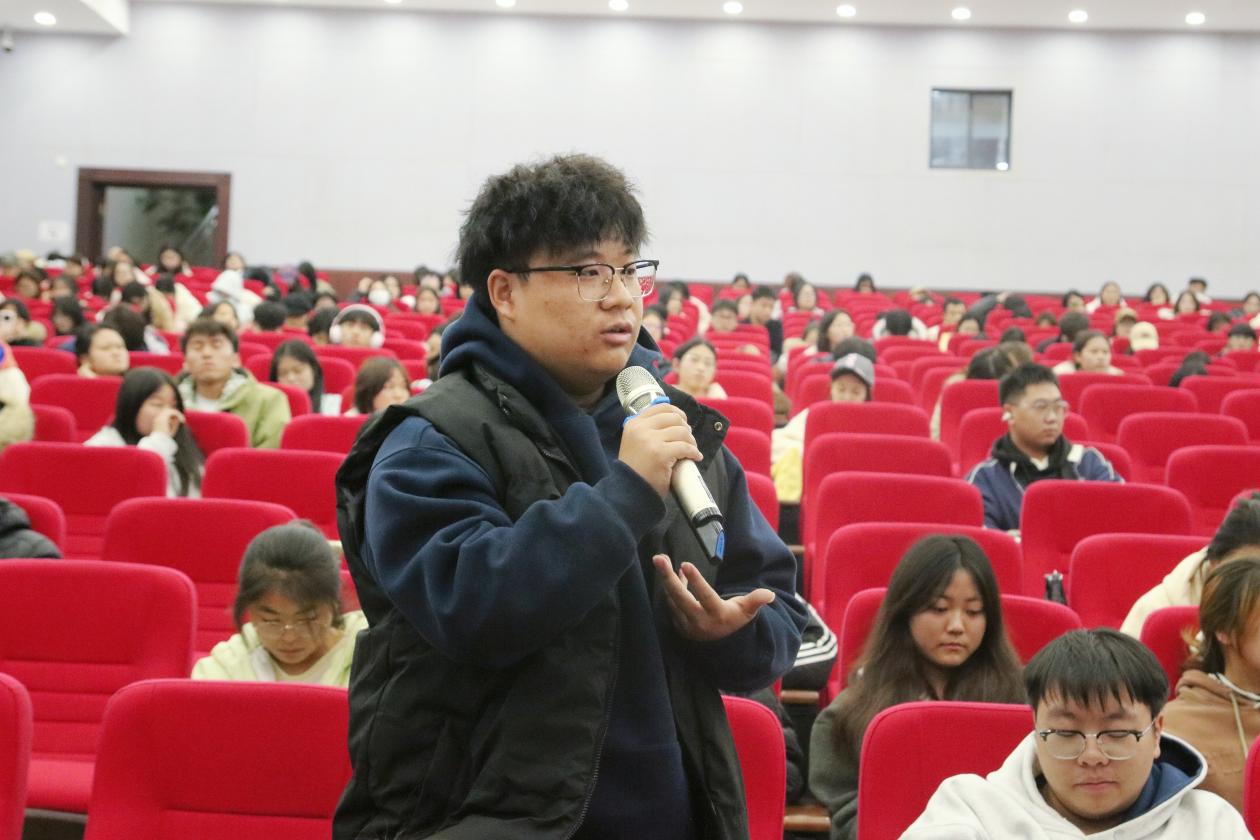 在互动交流环节,与会学生围绕非遗文创项目定位、机器人技术应用场景创新以及首次参赛准备工作等问题踊跃提问。两位专家指出,项目内容应与团队专业背景或个人经历紧密结合,创新可体现于场景聚焦与技术集成等方面。他们鼓励同学们深入开展调研、扎实积累经验,通过真实用户反馈与项目持续迭代来提升整体说服力。