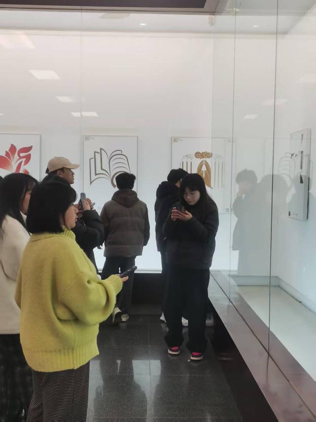 活动期间,学生团队在唐黎老师带领下,系统参观了展览各个板块,详细了解每件作品的创意来源、文化内涵与设计手法。在文创互动体验区,学生们亲身参与“顺”字创意等实践项目,近距离感受地域文化与现代设计的融合魅力。通过与展览策展人、部分参展设计师的交流,学生们深入探讨了文化 IP 市场化转化、乡村文创产品开发等关键问题,对“设计服务乡村振兴”的理念有了更深刻的认知。