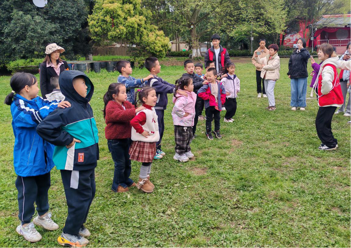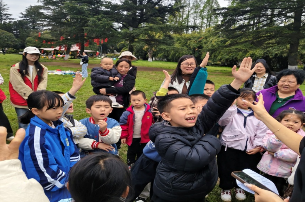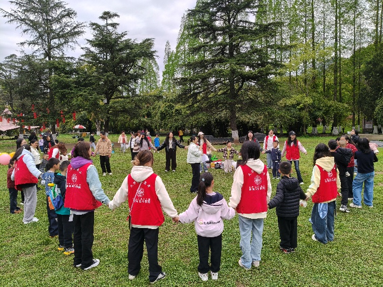 活动现场,志愿者与社区工作人员携手,带领孩子们徒步前往花溪公园大草坪,途中引导孩子们化身“环保小卫士”,弯腰捡拾路面及绿化带内的垃圾,以躬身实践践行绿色发展理念,让环保种子在心中生根发芽。抵达活动场地后,“桃花朵朵开”破冰游戏温情启幕,欢声笑语间打破陌生壁垒,让孩子们快速相融相伴。随后,安全知识小课堂如期开展,志愿者们以“宣讲解读+有奖问答”的生动形式,围绕清明节文明祭祀、森林防火核心要求,细致讲解鲜花祭祀、文明祭扫的重要意义,严正倡导“严禁带火种进山”,号召孩子们争做生态守护者,带动家长共同守护绿水青山。同时,志愿者们还同步开展未成年人保护、垃圾分类、防溺水等安全知识宣传,趣味问答环节中,孩子们踊跃举手、积极抢答,在互动中筑牢安全思想防线,在倾听中掌握自护本领。