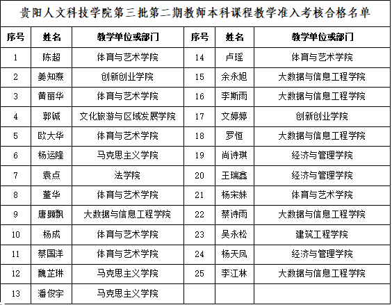根据《pp电子官方网站教师本科课程教学准入考核实施办法(试行)》(人文校字〔2024〕53号)《pp电子官方网站关于开展第三批第二期教师本科课程教学准入考核的实施方案》(人文教字〔2025〕21号)文件的相关要求,2025年11月10日-12日,人事处、教务处共同组织了第三批第二期教师本科课程教学准入考核工作,现对考核合格教师名单进行公示。