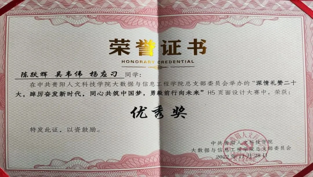 该支部在年级专业排名前十的有6名同学,名次较上一学年提高15名次者有9人。在评奖评优方面,2021-2022学年度有3位同学获得国家励志奖学金,5名同学获得奖学金,11名同学被评为“三好学生”,7名班委被评为“优秀学生干部”。在2022年五四评优期间,21级计算机科学与技术1班团支部成员被评为优秀团员有2人;优秀志愿者3人;优秀团干部1人。2023年,2021级计算机科学与技术1团支部荣获“五四红旗团支部”,在五四评优期间,2021级计算机科学与技术1班团支部成员被评为优秀团员者6人;优秀志愿者2人;优秀团干部1人。班上同学积极参与学校举办的各类活动。比如,12·9爱国运动朗诵比赛、“创新创业大赛”、“挑战杯”竞赛、五四系列活动、“君和杯”辩论赛,“青春杯”王者比赛,“慧科APP”大赛等。其中,2022年获得“创新创业大赛”校级铜奖1人;“慧科杯APP设计大赛”优秀奖2人;“青春杯”王者荣耀大赛优秀奖1人;“迎春杯”篮球赛男子组道德风尚奖2人。“H5页面大赛”校级优秀奖。2023年,“创新创业大赛”校级一等奖1人,校级二等奖2人;第十八届“挑战杯”全国大学生课外学术科技作品竞赛贵州省赛校级二等奖1人。这些数字还会持续上升,他们会不懈努力。因为他们一直相信:不具备过硬的科学文化知识,就会被社会所淘汰。所以该团支部的学风建设从未被忽视,他们着力打造一个积极向上、学风浓厚、敢试敢闯、敢奋斗的团支部。