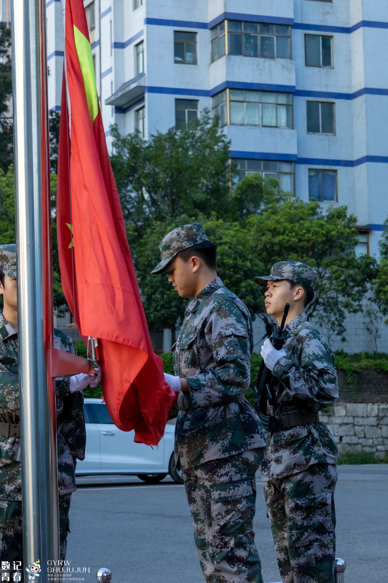 最后,主持人宣布:大数据与信息工程学院花溪校区第九周升旗仪式到此结束。