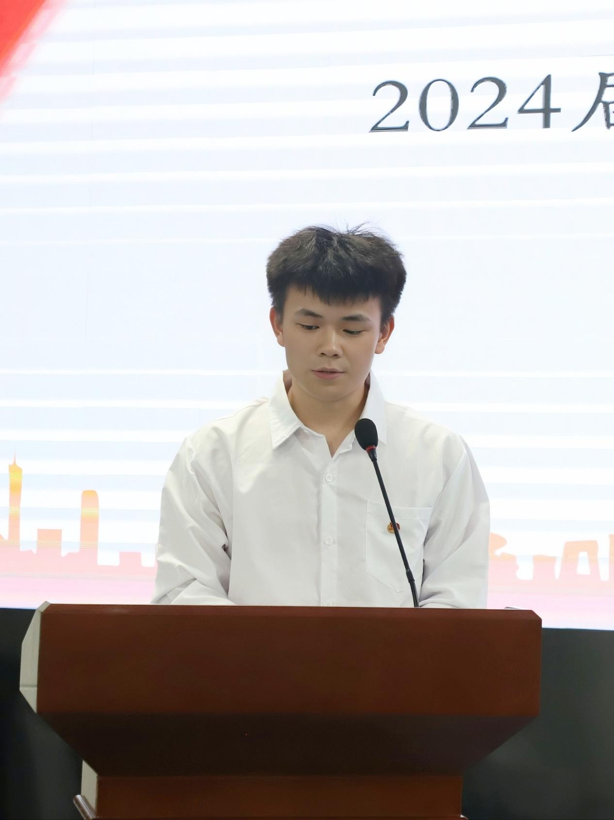 2024届团委学生会主席陈熙代表24届团委学生会作总结发言,他回顾了过去一年在学生会的奋斗历程,分享了组织活动、攻克难题的难忘瞬间,并对老师与同学们的支持表达真挚谢意,他表示:“希望新一届团委学生会再接再厉,推动团学发展更上一层楼。”