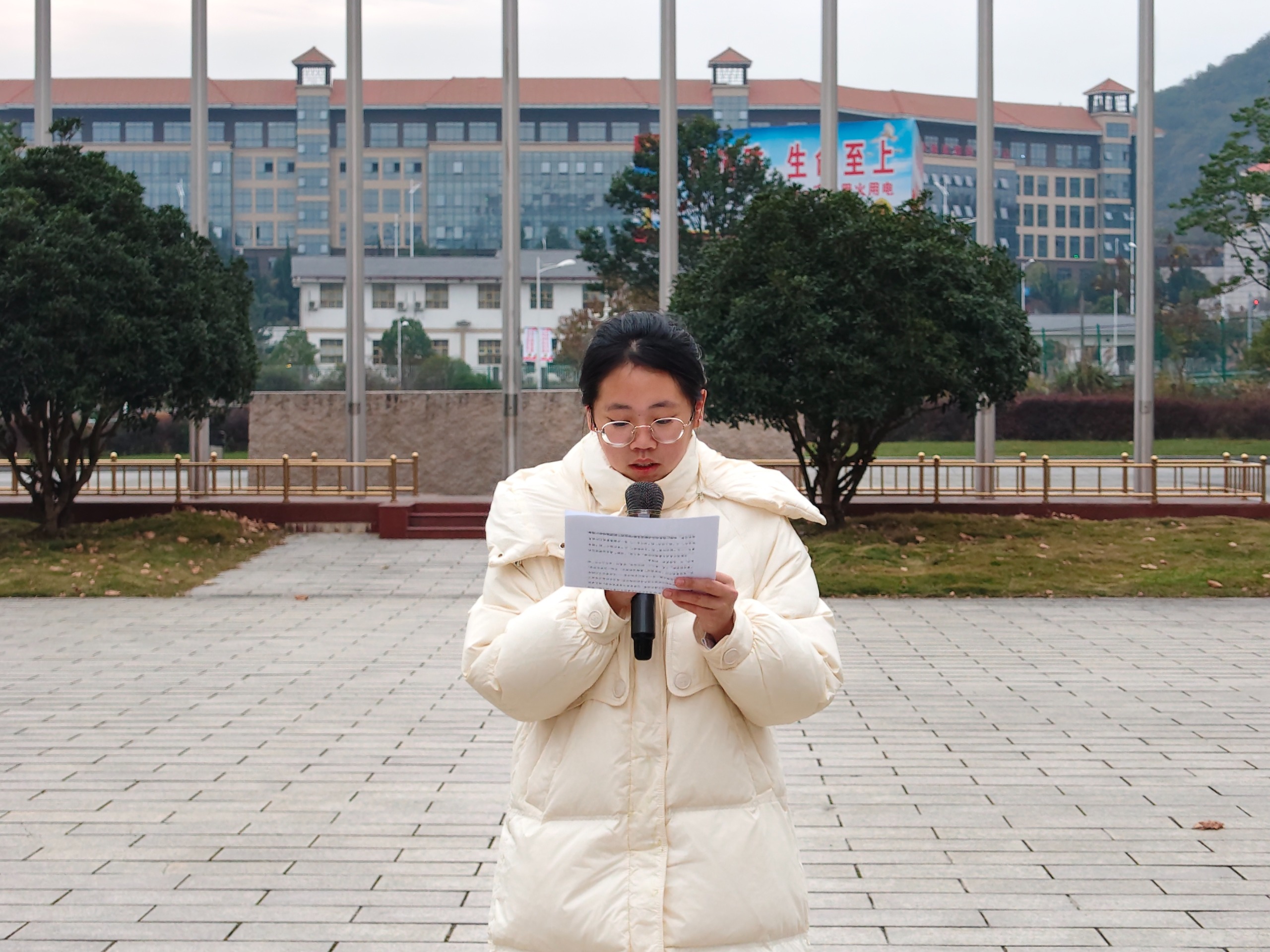 11月24日早晨,经济与管理学院在大学城校区中心广场隆重举行升旗仪式。本次升旗仪式由青年教师代表杨天凤老师、学院全体学生和国旗护卫队共同参与。