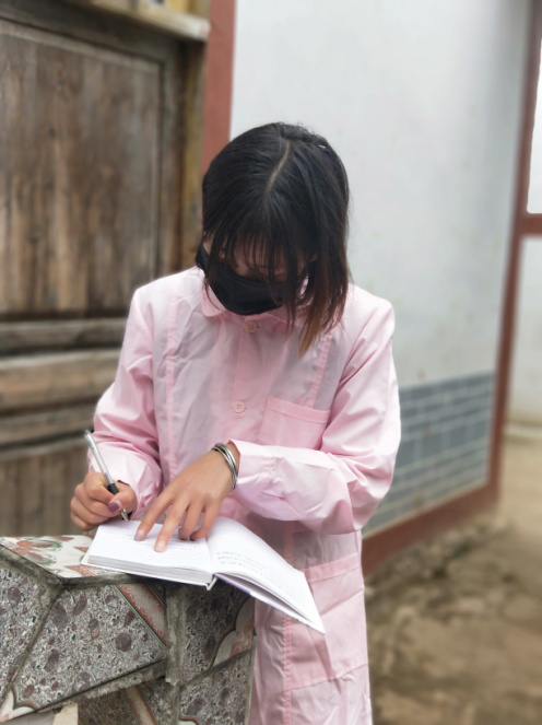 王亚,女,中共预备党员,经济与管理学院2017级旅游管理专业3班学生。2020年1月27日开始,随贵州省毕节市赫章县双坪乡红卫村村卫生室医生一同入户排查武汉返乡人员、为大家测量体温、做资料登记等相关工作。在疫情面前,她没有时间去在乎自己的形象、没有时间去考虑其他事情,只希望每个人的体温都在正常范围内,健健康康。她坚信,在党中央的统一领导部署和全国人民的共同努力下,我们一定能战胜病魔。