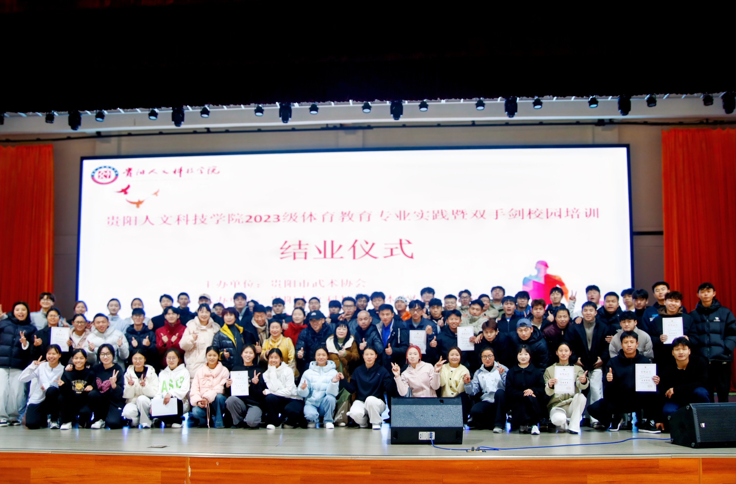 12月16日-25日,由贵阳市武术协会主办、pp电子官方网站体育与艺术学院承办的体育教育专业实践暨双手剑校园培训专项活动成功举办。pp电子体育教育专业70余名师生、武术社团骨干参与培训,通过八天系统教学与实践展示,实现了技能提升与文化传承的双重目标。