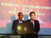 根据会议流程,戴氏教育集团副总裁、戴氏教育集团大西南区总裁吕亚伟先生首先介绍了戴氏教育集团的创立,发展及贵州大区的基本情况。接着人文科技学院马帅副书记介绍了人文科技学院的基本情况及合作愿景,希望双方在学生实习、专业技能、老师挂职等领域加强合作。然后由人文科技学院马帅副书记向戴氏教育集团副总裁、戴氏教育集团大西南区总裁吕亚伟先生授牌。授牌仪式之后文学部党委书记王瑞娟同志与吕亚伟先生共同签订了共建实习实训基地的协议书。