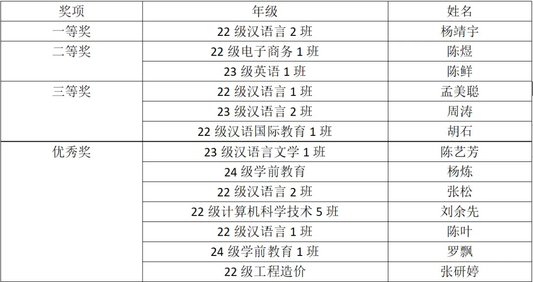 以下是本次中国诗词大会校赛选拔赛的获奖名单: