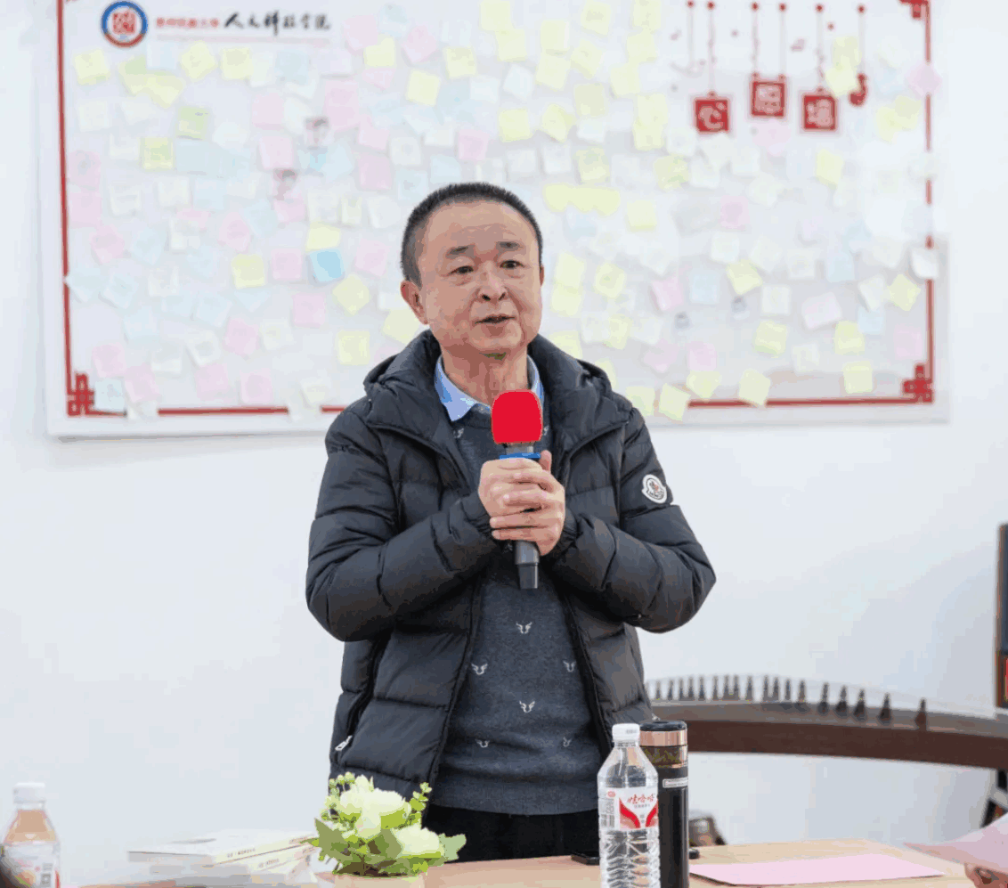 在学生领读员分享环节,2023级广播电视编导专业的朱笑燃同学和2024级汉语言文学专业的苏欣悦同学,分别从独特的视角分享了自己阅读《苏东坡传》的所思所想。他们的分享洋溢着青春与活力,展现出新时代大学生对经典作品的创新理解。在师生互动交流环节,大家也积极踊跃发言,围绕苏轼的作品、人生经历等内容,各抒己见。思想的火花在交流中不断碰撞,现场气氛热烈。