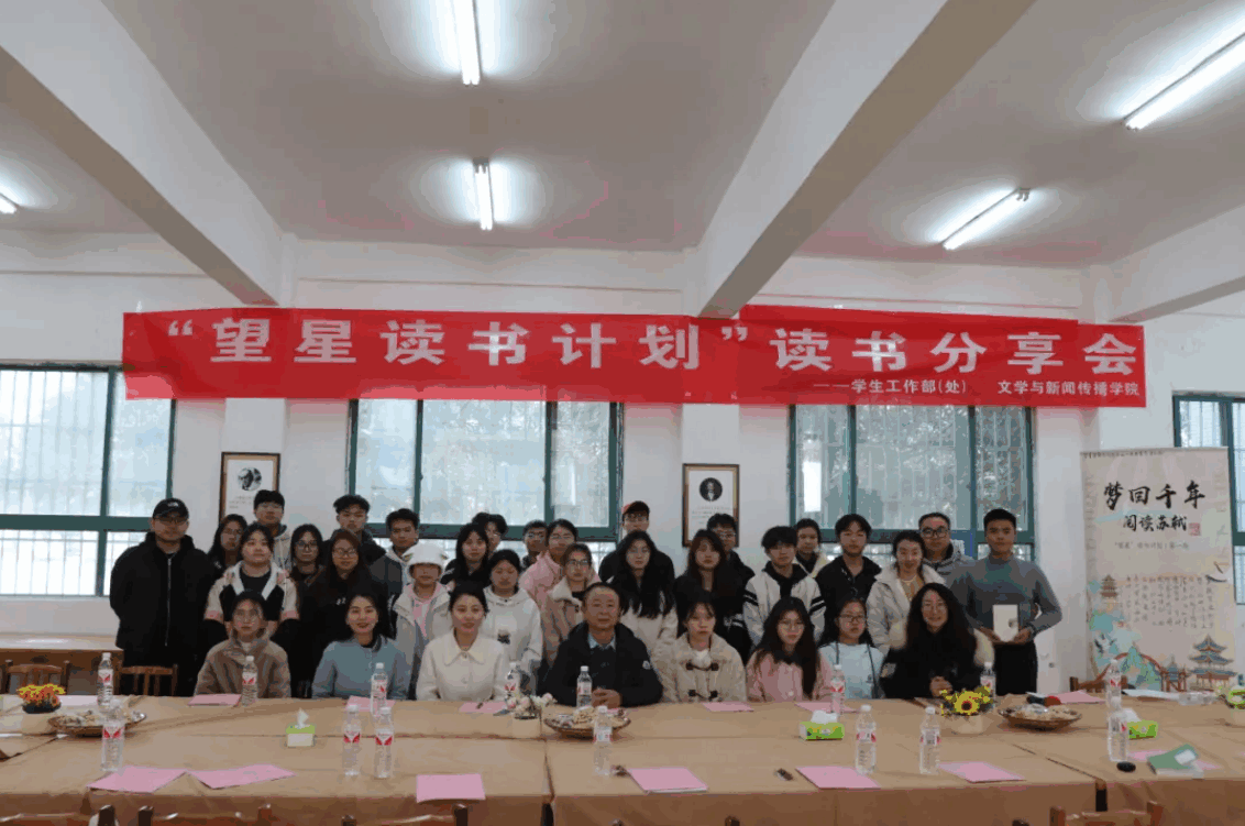 活动尾声,钟旭院长还为参与分享和交流的同学赠送了活动纪念品,这不仅是对同学们积极参与阅读的肯定,更是对本次活动的一份珍贵纪念。最后,全体师生合影留念,用镜头定格这一充满书香与欢乐的美好时刻。 据了解,“望星读书计划”是学校2025年“典耀中华”主题读书行动系列活动的组成部分。接下来“望星读书计划”将持续绽放光芒,引领更多师生走进经典的世界,在阅读中收获知识、启迪智慧、滋养心灵,让阅读成为校园生活中不可或缺的一部分。