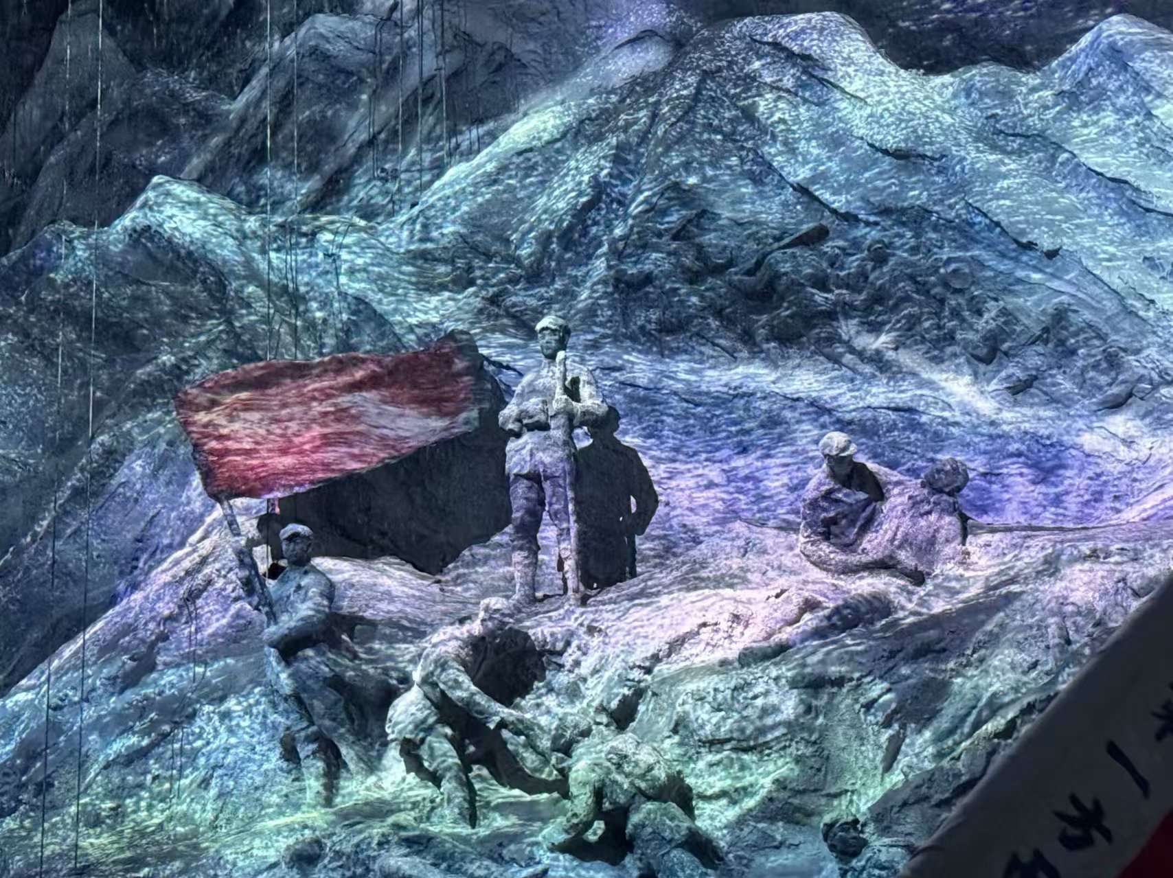 活动伊始,学生工作部的老师、易班工作站的学生们踏入了“红飘带”长征文化数字艺术馆。该艺术馆是全国首家聚焦长征主题的全域沉浸式数字体验馆,分为“无名英雄”“血火洗礼”“伟大转折”“砥砺征途”“胜利丰碑”“新时代新长征”六个篇章,场馆运用先进的数字科技手段,让在场的每一个人都仿佛穿越时空,重回那个战火纷飞的年代。