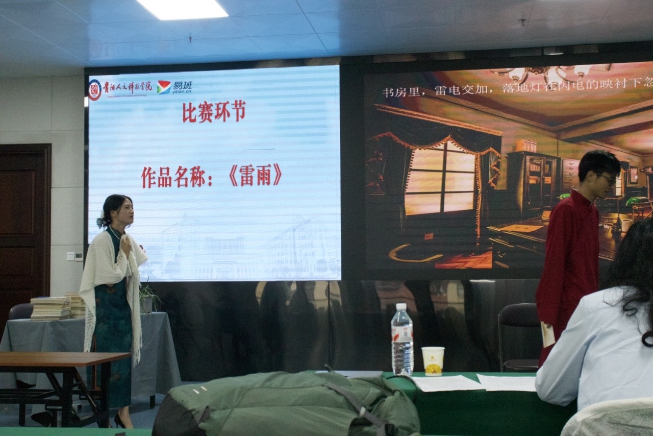 活动伊始,主持人依次介绍了莅临决赛的评委老师,并详细讲解了活动规则,随后宣布“对话文学,演绎经典”话剧决赛正式开始。