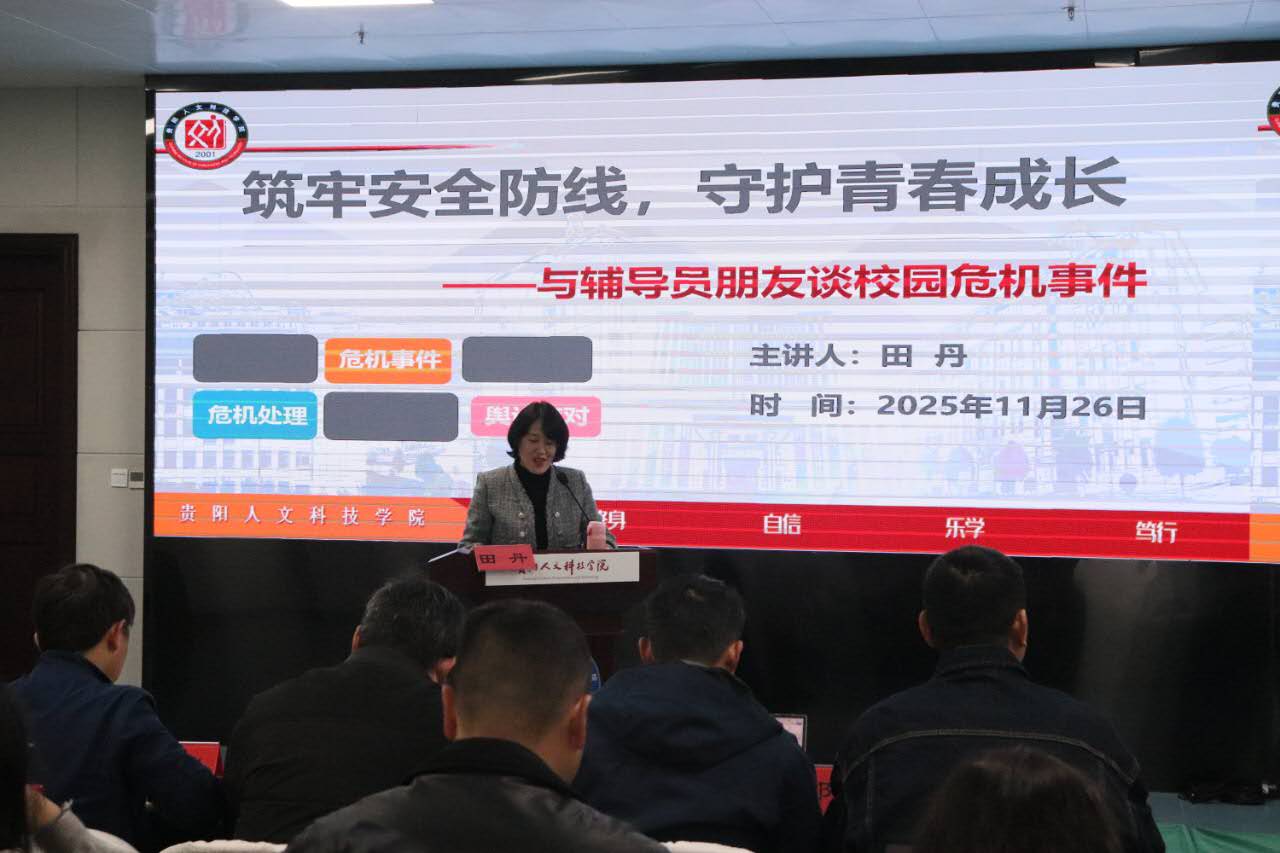 11月26日,经济与管理学院党委书记田丹“筑牢安全防线,守护青春成长”为主题展开讲解。田丹书记首先从教育部43号令对辅导员职责的界定出发,指出危机事件应对是辅导员工作的重中之重,并结合学生突发疾病、寝室矛盾等真实案例,详细讲解了处置流程与注意事项,并强调在日常工作中要秉持“学习政策的恒心、发现问题的细心、处理问题的耐心、维护稳定的决心”。