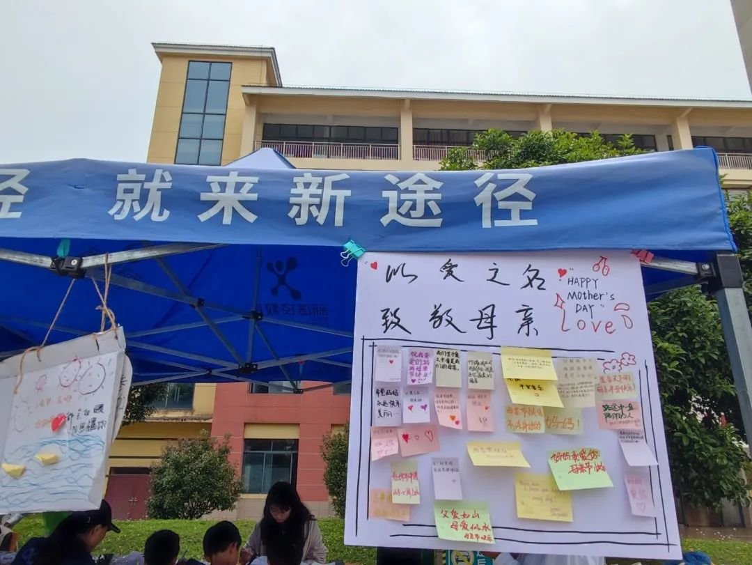 同学们利用废旧塑料瓶为材料,进行涂鸦创作,写上文字祝福等方式表达对母亲的祝愿,吸引了许多同学的积极参与。