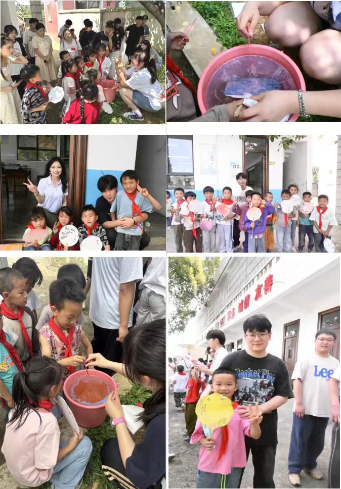 在梧桐树的浓荫之下,15位大学生摇身一变成为“小老师”,引领着小学低年级的孩子们亲手制作漆扇。组长陈雨桐亲自示范了“三分水七分漆”的调配技巧。孩子们全神贯注地蘸取颜料,在纯白的扇面上绘制出可爱的卡通形象和苗族银饰的图案。“我想把奶奶的头饰画上去,让这把扇子充满家乡的气息,”一位一年级的学生边画边分享。最终,这些色彩缤纷的漆扇在阳光下晾干,上面的精美花鸟、民族图案与孩子们的笑脸交相辉映,构成了一幅生动的画面。