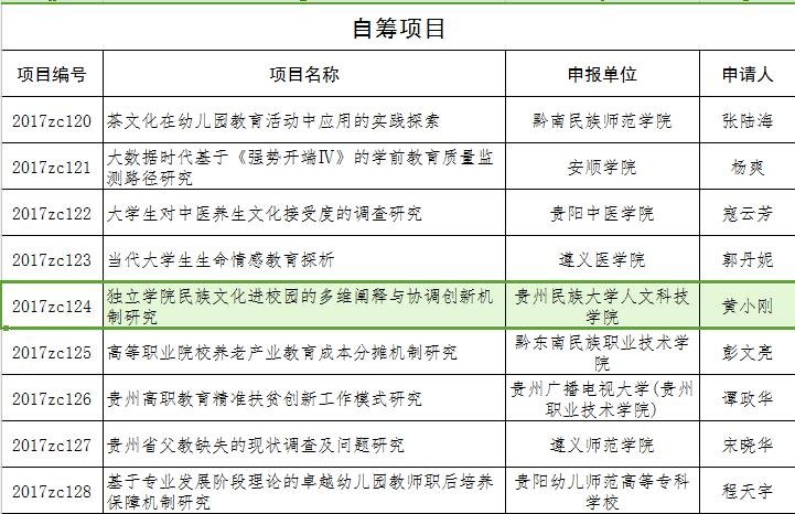 近日,贵州省教育厅办公室印发了《关于2017年度高等学校人文社会科学研究项目立项的通知》(黔教社发〔2017〕98号),公布了本年度同意立项的项目,学部黄小刚教师联合管理学部部分民俗学学科团队成员所申报的课题《独立学院民族文化进校园的多维阐释与协调创新机制研究》喜获贵州省教育厅2017年度人文社科项目自筹项目立项。