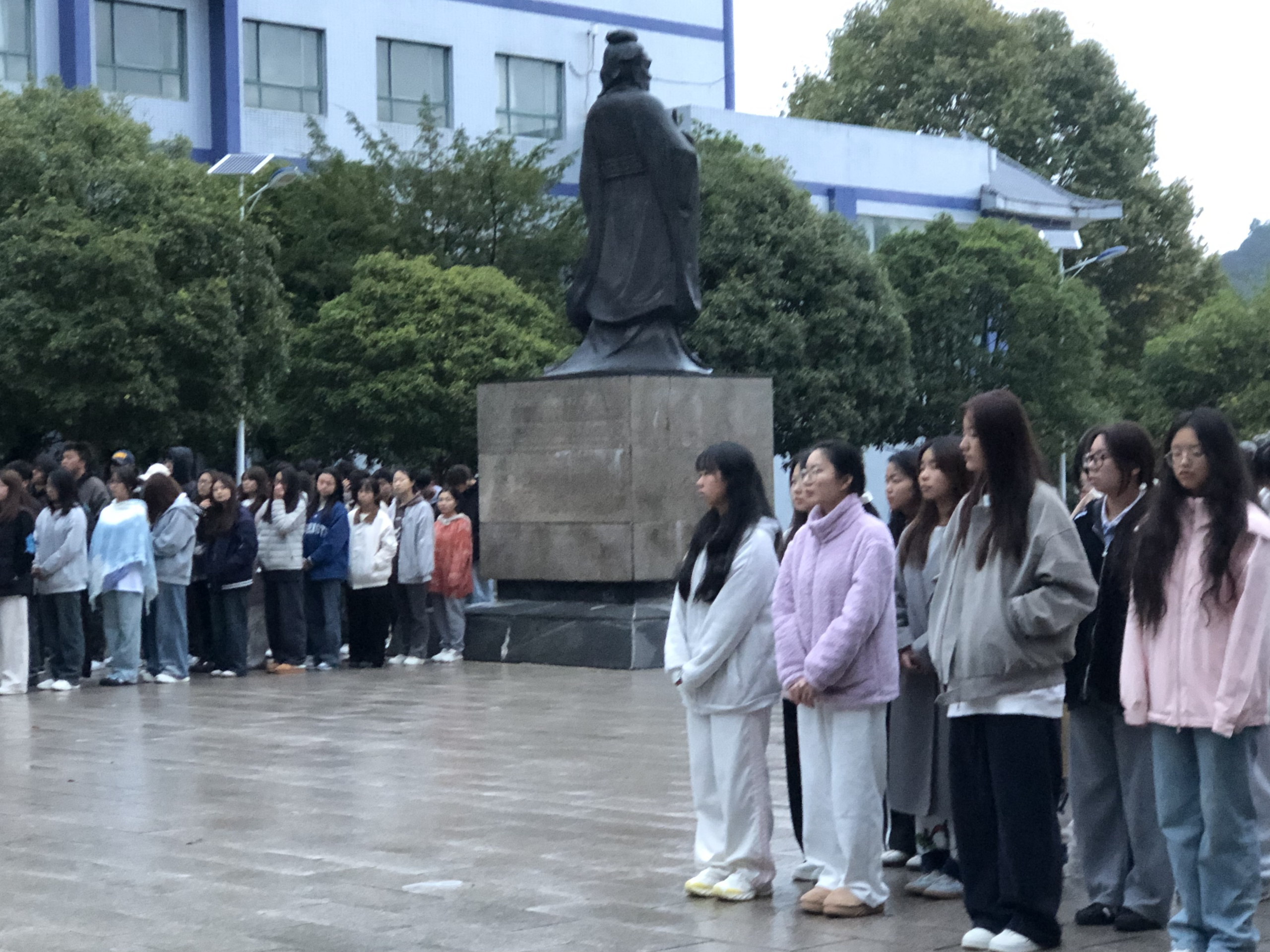 清晨的校园带着寒意,中心操场的气氛却庄重肃穆。同学们早已整齐列队,他们精神抖擞,静默肃立,展现着法律人特有的严谨风范与昂扬姿态。