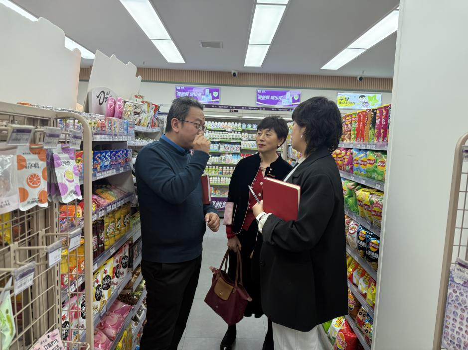 随后,学院一行参观勇惠直营便利店,深入了解了货架管理、精准选品策略及数字化营销工具的应用场景,详细讲解了商品分区逻辑、消费群体画像及即时零售技术的实际操作,为教师们提供了“沉浸式” 的行业认知体验。通过实地观察,教师们不仅将专业知识与商业实践相结合,同时更直观感受到数字化技术对提升运营效率、优化用户体验的重要作用。