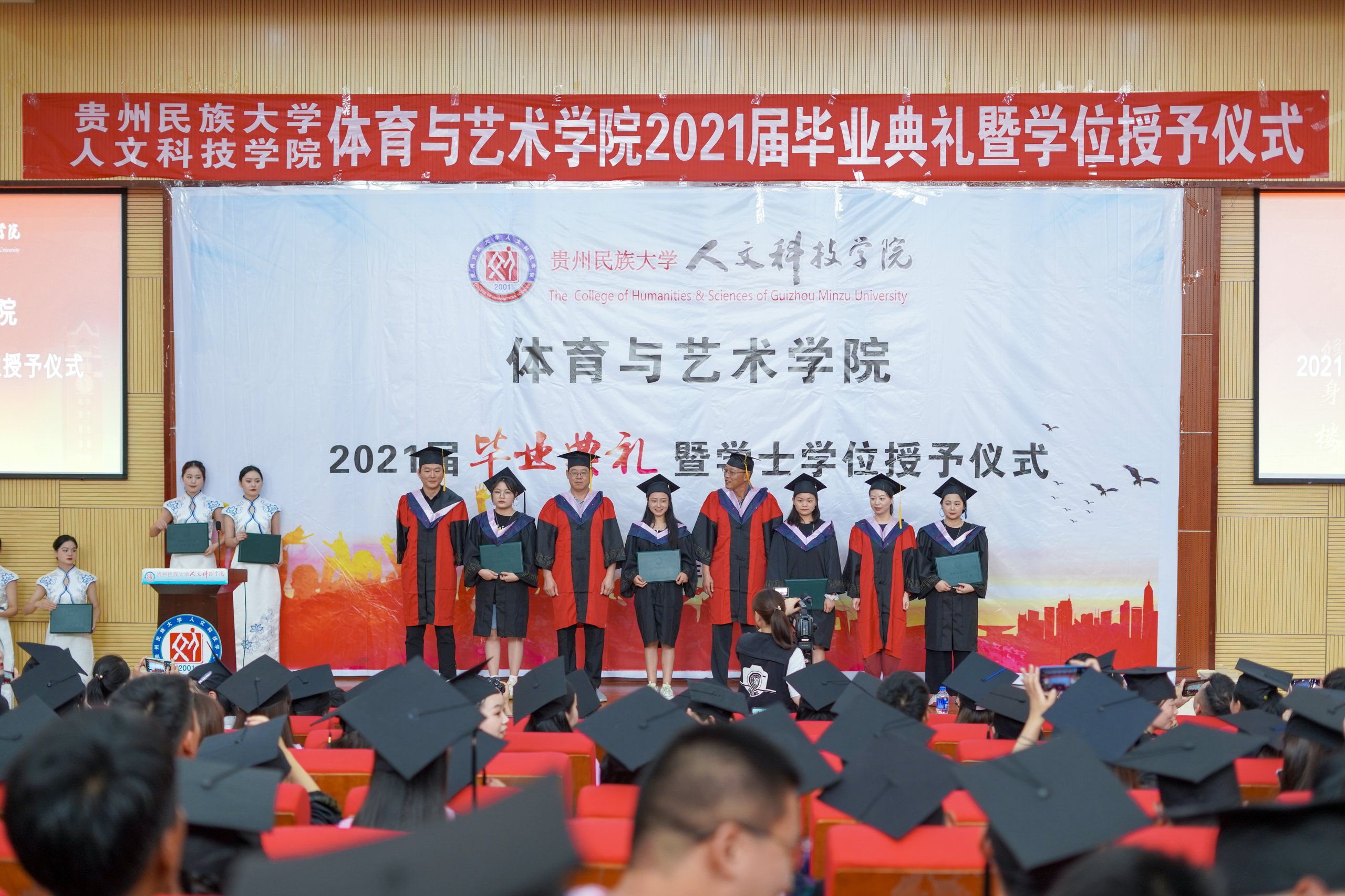 仪式最后,体育与艺术学院院长雷帮齐,教授石朝平、副教授王可、副教授李尧分别为体育与艺术学院2021届300余名毕业生代表进行拨穗仪式并授予学位证书。毕业典礼暨学位授予仪式结束后,在师长的叮咛下,在同窗的祝愿中,体育与艺术学院2021届毕业生奔赴祖国各地建功立业,承担起国家与社会的责任,开始了新的追梦之旅。