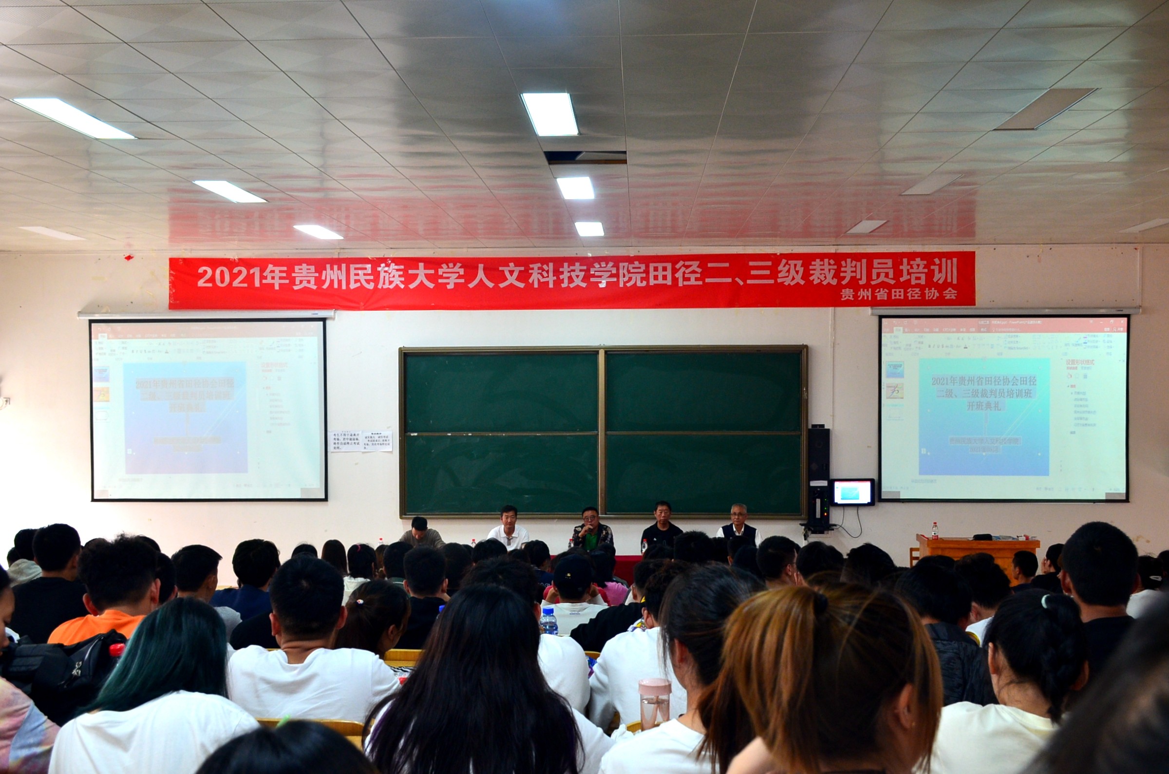 为提升pp电子体育类专业学生田径项目裁判员的执裁水平,提高学生的就业竞争能力,更好更快的推进pp电子田径项目的发展,2021年5月8日,pp电子在修身楼207教室举行2021年田径二、三级裁判员培训班开班仪式。出席开班仪式的领导有贵州省田径协会副主席张优誉、贵州民族大学人文科技学院特聘教授孟刚和李济民、体育与艺术学院党总支书记王雪。本次开班仪式由体育与艺术学院体育教研室副主任邓程民主持。