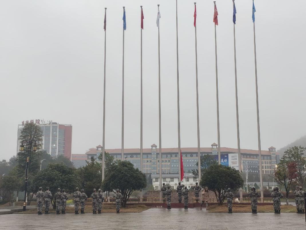 升旗仪式现场,2022级休闲体育专业学生孔海艳丽、2024级环境设计专业学生陈亚楠分别做国旗下的讲话。