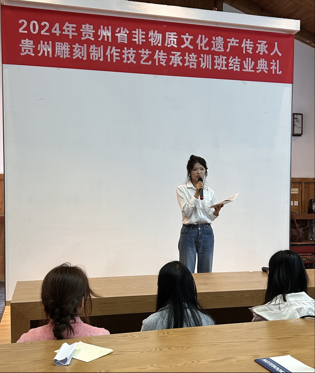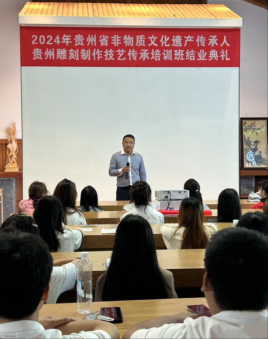 为更好地了解非遗文化,提高非遗技艺的实操能力,培养师生非遗传承意识。我院联合贵州黔艺宝文化艺术发展有限公司开展的贵州雕刻制作技艺传承培训在经过10天的紧张学习和实践操作后,2024年6月26日下午顺利结班。本次培训旨在传承和弘扬雕刻技术,培养更多的雕刻人才,为雕刻行业注入新活力,积极探索“大师进课堂,学生进大师工作室”的实践教学模式。