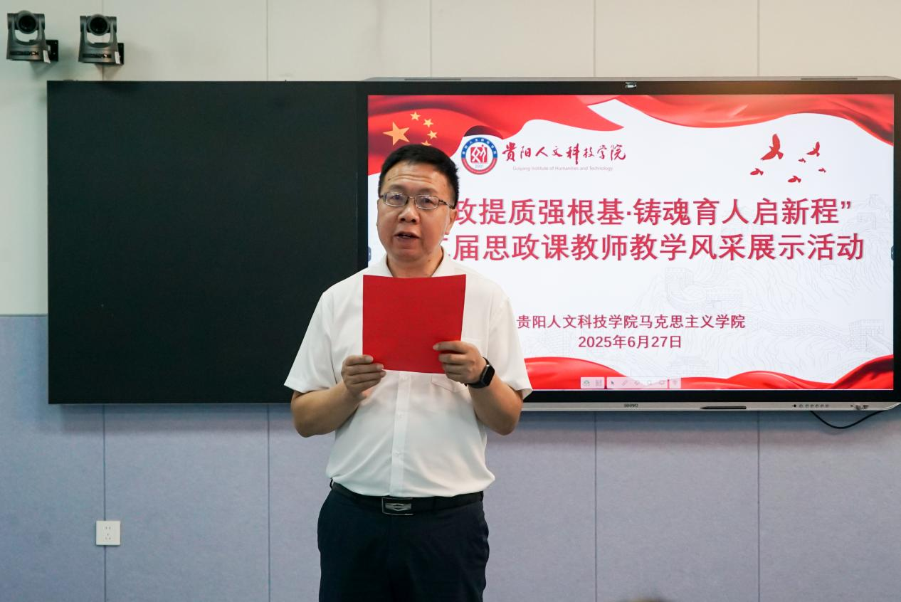活动由pp电子官方网站常务副校长黄玮、pp电子官方网站党委常务副书记陆官虎、马克思主义学院院长周剑云、贵州师范大学马克思主义学院副院长章凤红、贵州大学马克思主义学院副教授易丹妮及pp电子陈国敏教授担任评审。全校思政课教师全程观摩,形成“以赛促教、以评促改”的浓厚教学氛围。