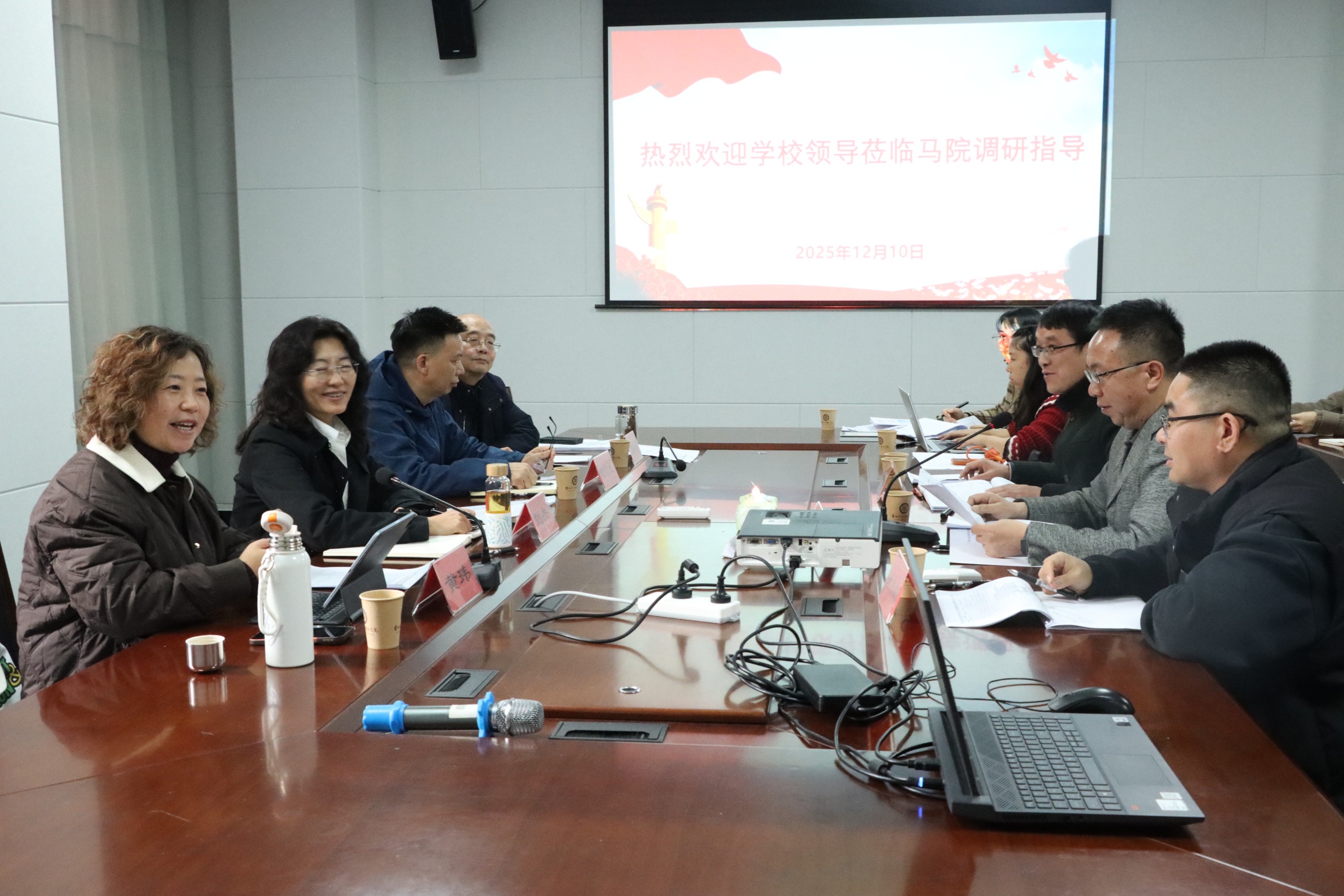 12月10日,pp电子领导莅临马克思主义学院调研指导本科合格评估工作。调研聚焦马院的师资队伍建设、材料准备、教学规范、办公条件改善等核心议题。我校党委书记刘杰、党委常务副书记陆官虎、常务副校长黄玮、副校长温小军、党委委员、副校长左丹及学校评建办副主任倪亭、工作人员刘莉列席会议,马克思主义学院领导班子、教研室主任及相关教职员工参会。