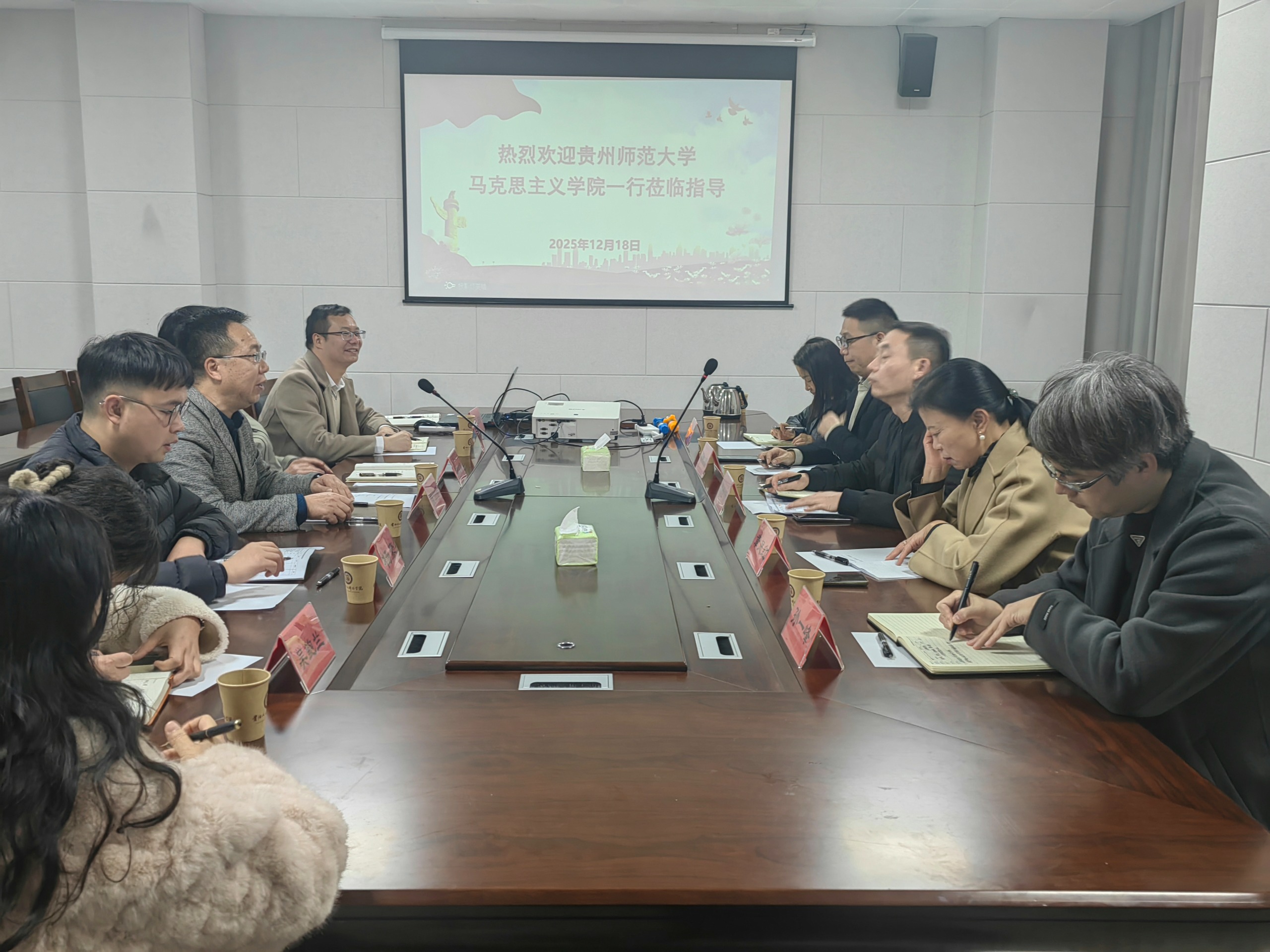 为进一步推进结对共建工作,持续深化两校马克思主义学院建设。12月18日,贵州师范大学马克思主义学院党委书记路世传、副院长章凤红一行莅临我院开展交流座谈,旨在深化我院马克思主义理论学科建设,加强校际党建与教学工作协同合作。我院院长周剑云主持会议,副院长罗成华、学院办公室负责人及各教研室主任参加会议。