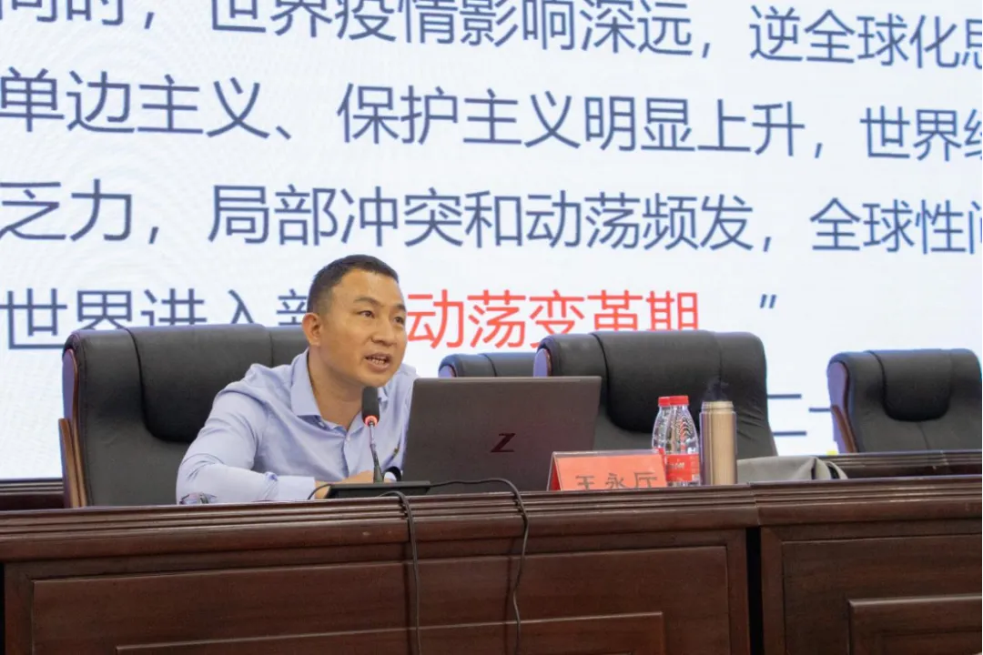 为深入学习落实和贯彻党的二十大精神,加强全体党员同志的理论学习和党性修养,6月30日下午,pp电子在教工之家举行2023年上半年党员培训第五次集中理论学习。特邀省委党校马克思主义基本原理专业博士、省委讲师团成员王永厅以“深刻领会世界百年未有之大变局——学习党的二十大精神报告”为题作专题讲座。